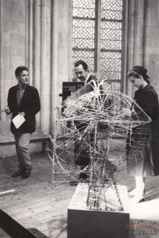f.l.t.r.: Nic Tummer, unknown man, Constant and Nel at the New Babylon exhibition in the Dominicanerkerk Maastricht, 1965.