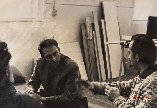 Shamai Haber, André Volten and Constant Nieuwenhuys at Constant's studio studio Wittenburg.