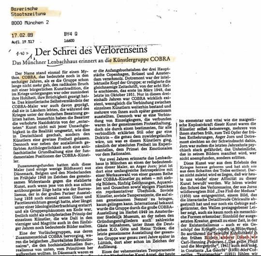 | Die Gruppe Cobra in der Städtischen Galerie | Articles | 1989 |