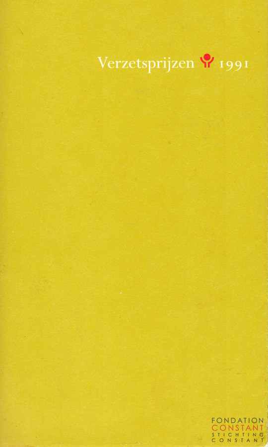 Texts spoken at the award ceremony of the Verzetsprijzen 1991 (Resistance Awards) on Saturday 4 May 1991 in De Nieuwe Kerk in Amsterdam. Constant won the Verzetsprijs 1991 along with Andreas Burnier, and read the text: Verzet ook nu.